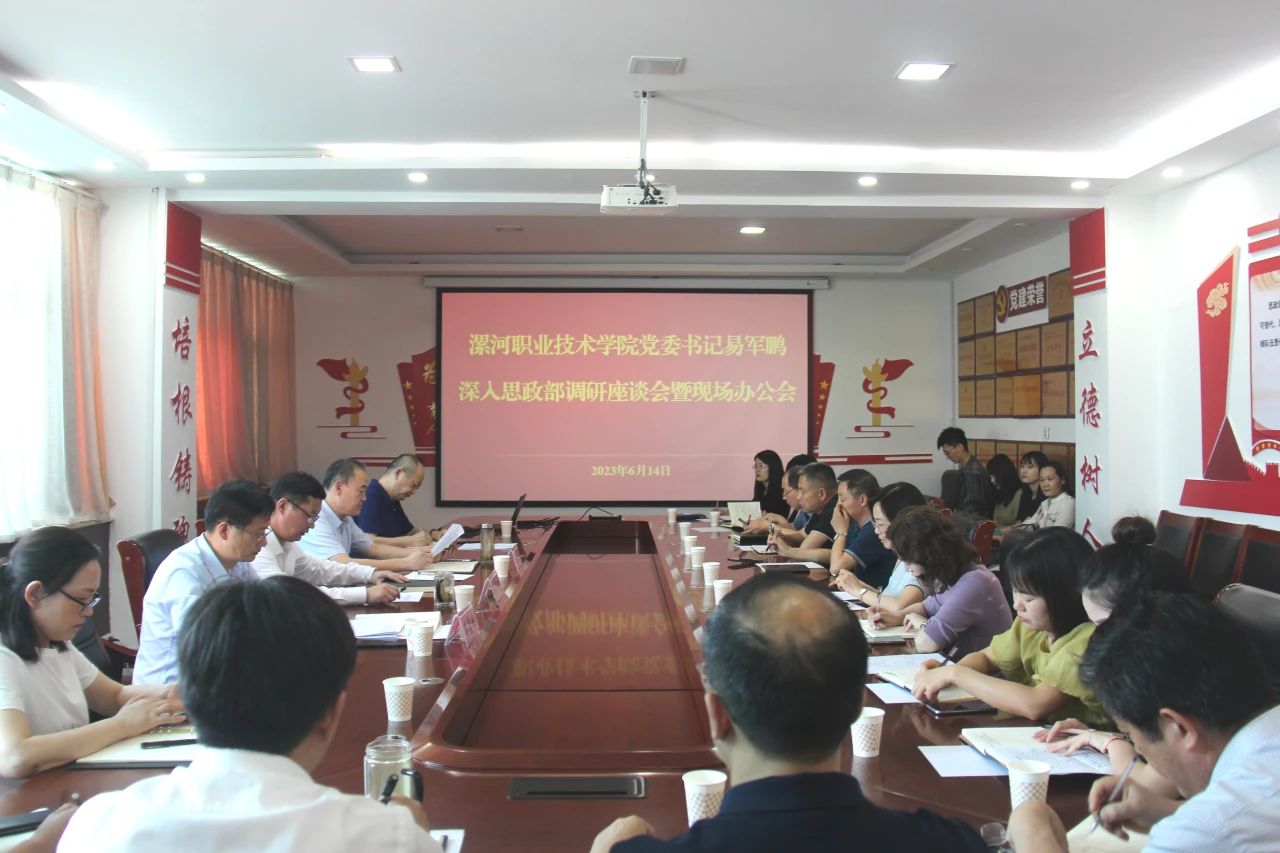 易军鹏认真听取了思想政治理论部负责人关于部门工作开展情况和下一步工作计划安排的汇报,并就省级示范性suncitygroup太阳集团创建、教学团队建设、大思政课建设、实践研修、职称评审等话题与在座的老师进行深入互动交流,详细询问了解思想政治理论部当前发展存在的困难以及急需解决的问题,要求与会各相关处室负责人现场进行了回复解答。