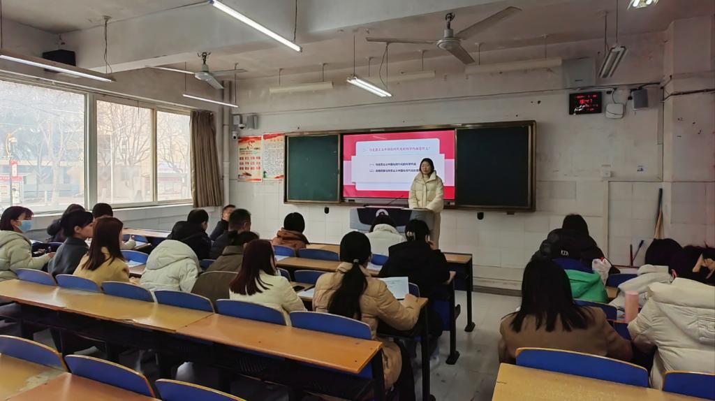 新入职教师选取《毛泽东思想和中国特色社会主义理论体系概论》课程的部分章节进行教学汇报展示。展示过程中,新入职教师精神饱满、仪态落落大方、语言表达轻松流畅,展现了良好的专业素养和较为扎实的基本功。展示结束后,大家对新教师此次教学展示进行了全面、专业、精准的点评,在充分肯定新教师专业素质、发展潜力的同时,就理清教学思路、完善教学设计、改进教学方法等方面提出了切实有效的指导意见。