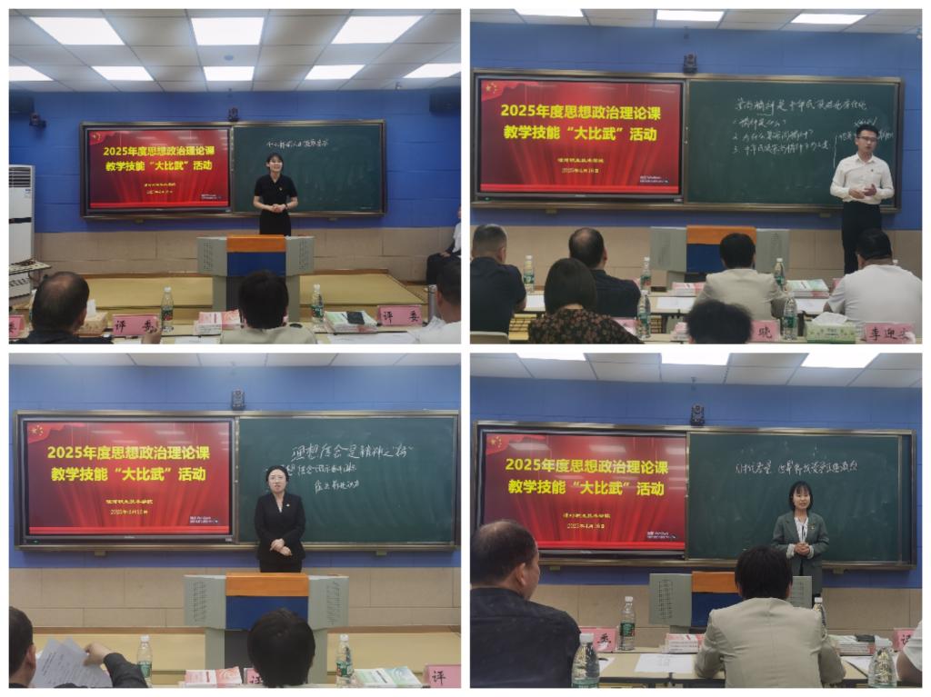 本次“大比武”于今年2月中旬启动,经过前期资格审查和材料初审,最终确定12名参赛选手进入现场比武环节。赛事特邀教师教育学院范亚军、建筑工程学院李冠磊两位具有较为丰富参赛经验的优秀教师,联合学校有关职能部门和学院负责同志组成评审团队,构建“校内联动、多维评价”的评审体系,确保赛事专业性与公信力。在“大比武”活动现场,参赛教师们紧扣思政课的教学内容,巧妙融合时政热点、学情特点、地域特色精心设计教学环节,整场比赛既有内容厚度,又有教学温度,充分展示了各自专业素养和教学技能,赢得了现场评委和教师的一致好评。赛后,评委专家结合自身参赛经验从内容设计、教学语言、教学效果等方面对参赛教师进行了详尽细致的点评,并提出改进意见建议。