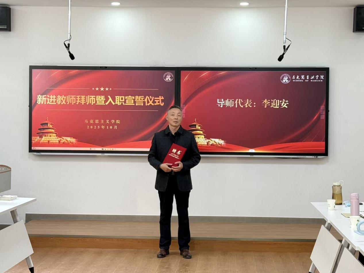 导师代表李迎安主任在发言中郑重承诺,将以身作则、倾囊相授,在平等交流中履行“传帮带”职责。他结合自身从教经验,向新教师提出两点建议:一是要勇于尝试,将课堂上的每一次“小插曲”视为成长的“磨刀石”,做到勤于反思、善于总结;二是要多走进导师课堂观摩,多带着教学设计与导师“磨课”,在“多问、多学、多练”中积累实战经验。新进教师代表张静表达了内心的期待与决心,承诺将以“空杯心态”虚心向导师求教,认真听课、主动反思,努力将导师的教学智慧转化为自身的实践能力,绝不辜负学院的信任与导师的付出。