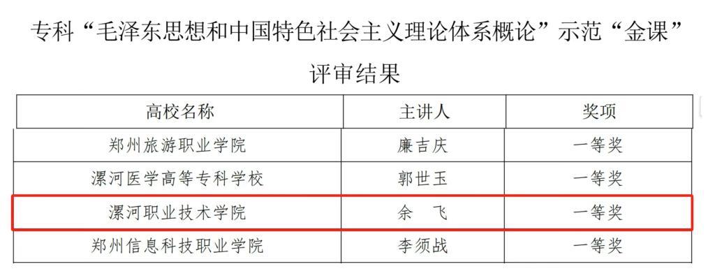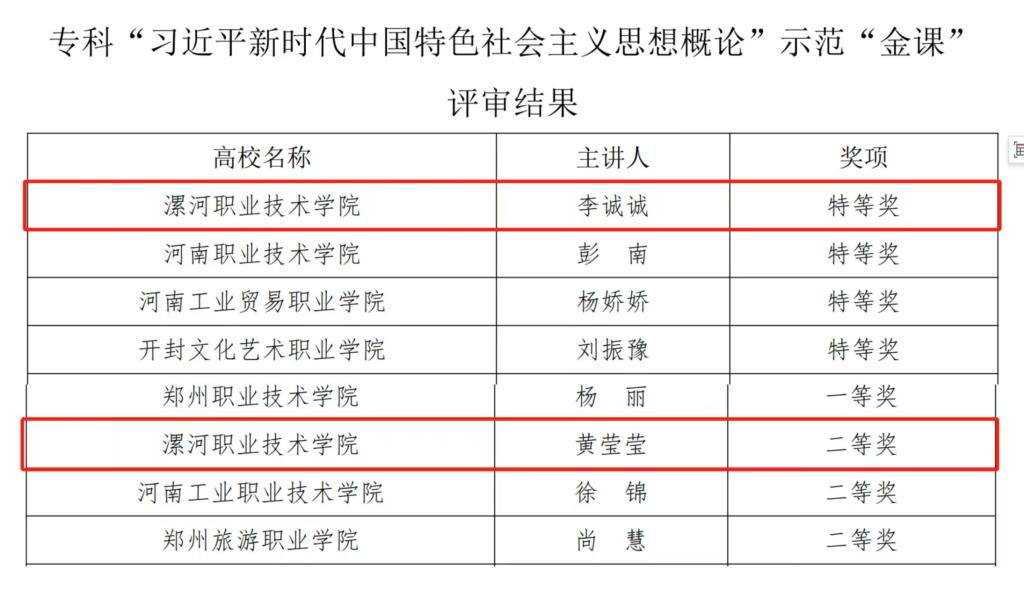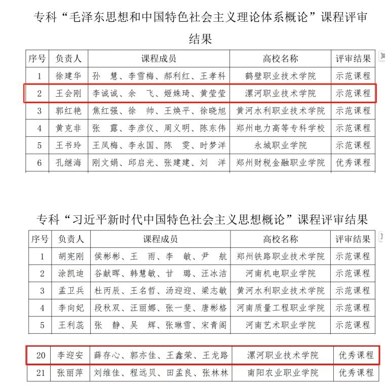 此次评选活动中,我校《毛泽东思想和中国特色社会主义理论体系概论》课程被评为2024年河南省思政课“示范课程”,《习近平新时代中国特色社会主义思想概论》课程被评为2024年河南省思政课“优秀课程”。